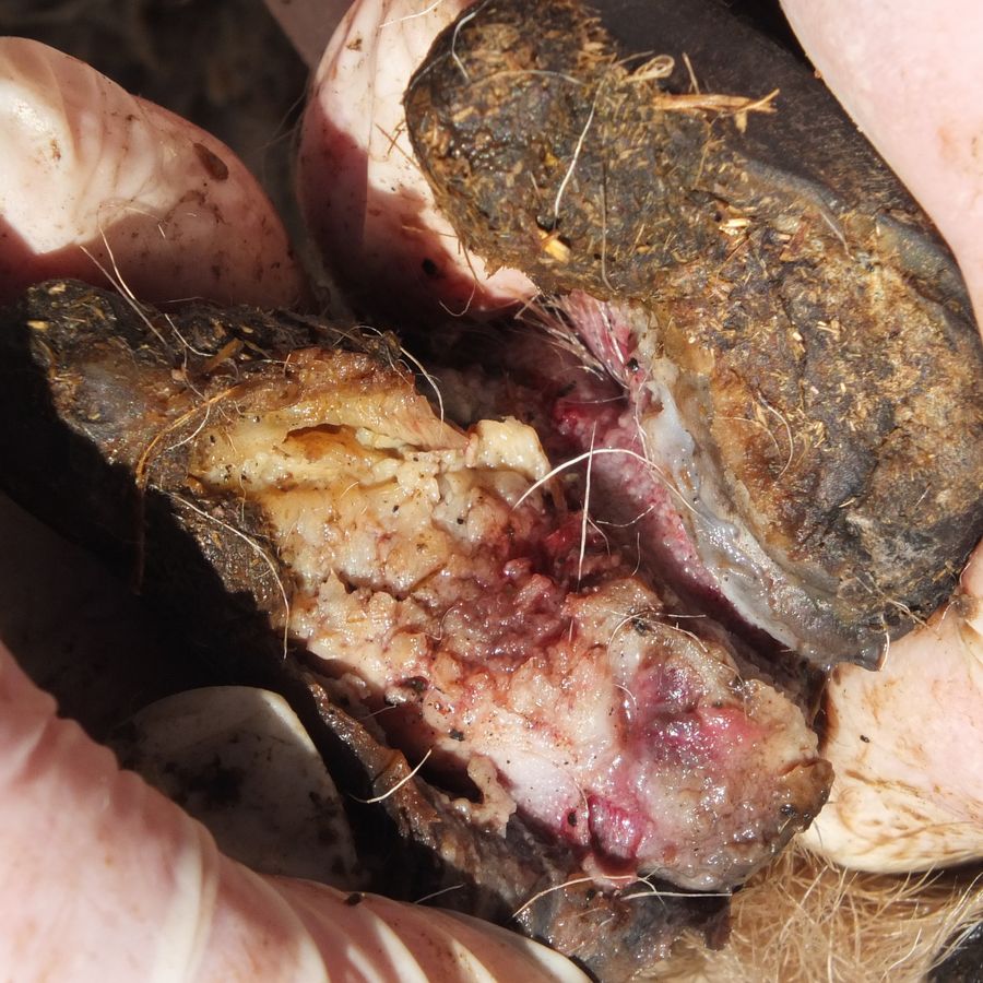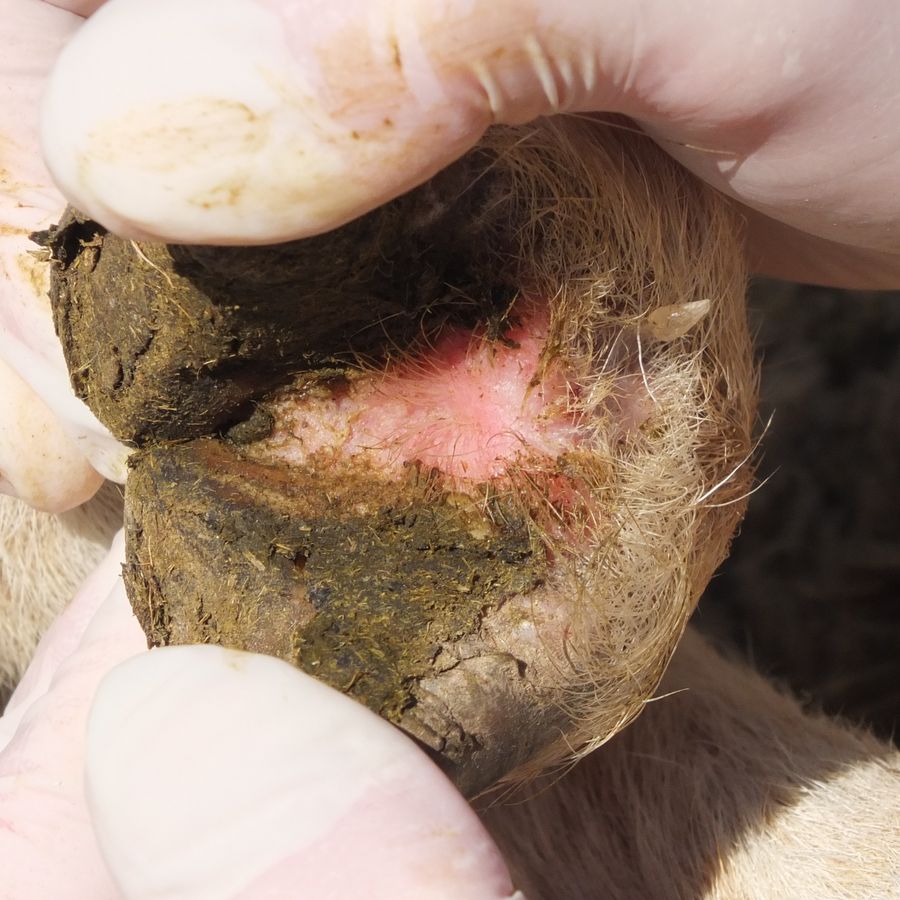 Moderhinke ist sehr schmerzhaft und ansteckend. Diese Krankheit, umgangssprachlich auch als Klauenfäule bezeichnet, führt zu einer Entzündung im Zwischenklauenspalt und kann unbehandelt bis zum "Ausschuhen" führen.